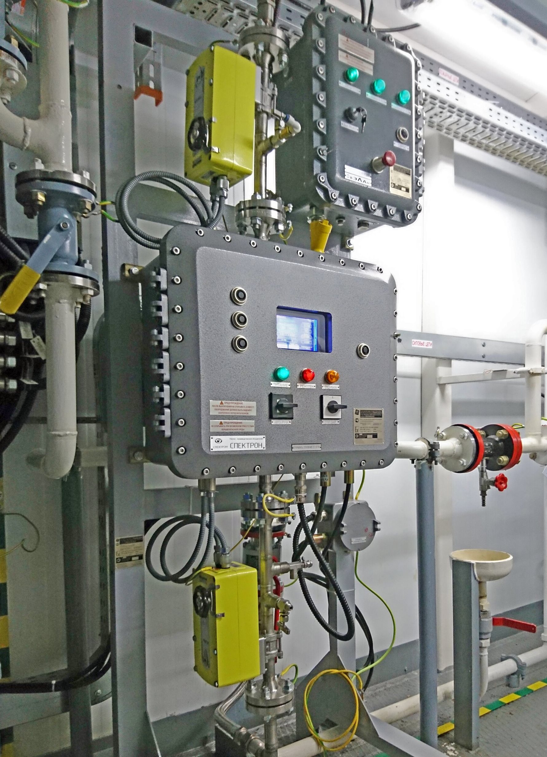 - отсекающие узлы с взрывозащищенными[4]электроприводами и функцией автоматического отсечения потока при отключении питания;