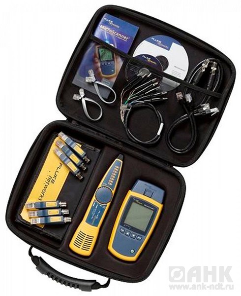 Fluke Networks MS2-KIT - расширенный комплект кабельного тестера MicroScanner2 для поиска и устранения неисправностей в витой паре, телефонном и коаксиальном кабеле. Набор дополнительно содержит индуктивный щуп для «прозвонки» кабеля, удаленные идентификаторы № 2-7, патч-корды и жесткий кейс для безопасной транспортировки.  Простой и понятный интерфейс пользователя, отображает всю информацию на одном экране и позволяет специалистам выполнять свою работу проще, быстрее и точнее..