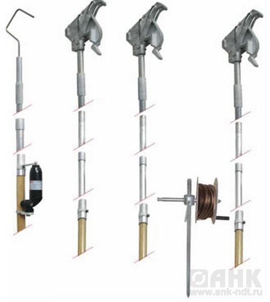 Предназначен для заземления проводов отключенных воздушных линий напряжением 6-10 кВ непосредственно с поверхности земли.