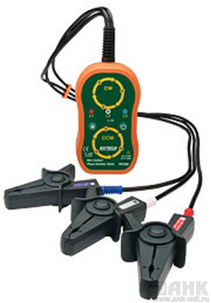 Бесконтактный тестер чередования фаз Extech PRT200 предназначен для измерения входного напряжения переменного тока от 75 до 1000В с частотным диапазоном от 45 до 65Гц. Имеет полностью изолированные бесконтактные зажимы типа крокодил, раскрытие зажима широкое. Светодиодная индикация указывает направление фазы  (по часовой стрелке или против часовой стрелки), выявление фазы под током.