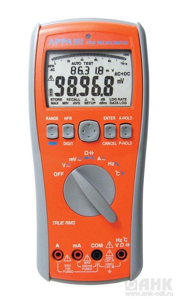 Цифровой мультиметр APPA-503 предназначен для измерения переменного (АС, AC+DC) и постоянного напряжения до 1000В, переменного и постоянного тока до 10А, частоты, скважности, емкости, сопротивления и целостности цепи, температуры, испытания p-n переходов