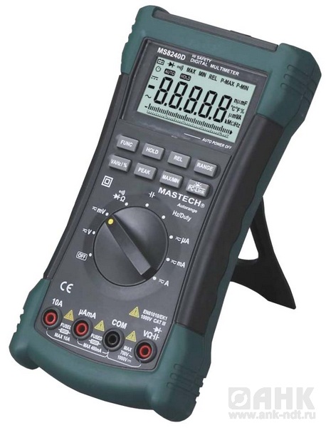 MS-8240D позволяет измерять с минимальной погрешностью значения силы тока постоянного и переменного напряжения, значения постоянного и переменного напряжения, сопротивления, ёмкости конденсаторов, скважность импульсов и частоту.