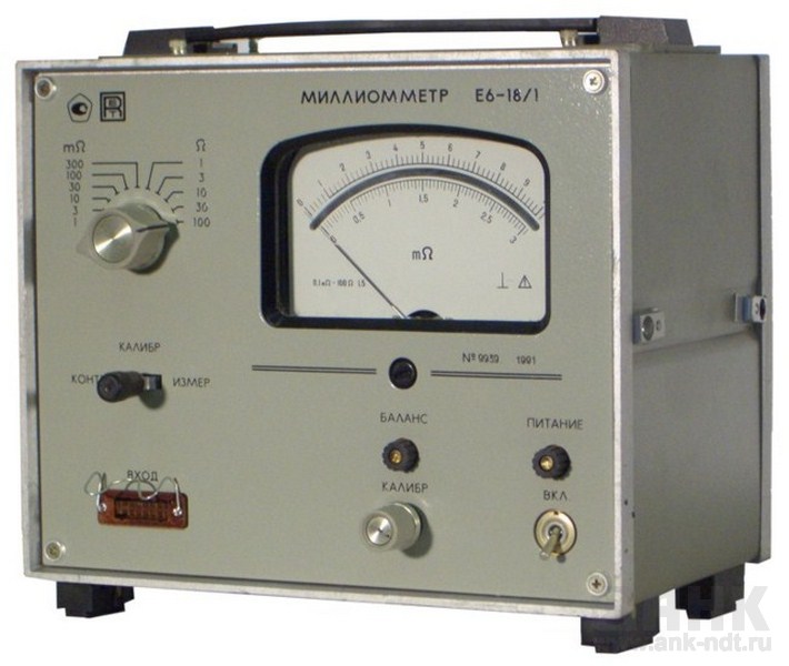 Прибор Е6-18/1 является модификацией базового миллиомметра Е6-18 и отличается от него наличием автономного питания, специальных измерительных кабелей и сниженным напряжением на разомкнутых токовых выводах.