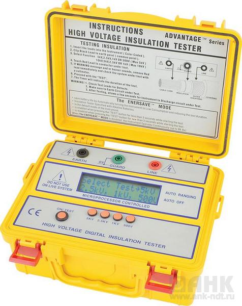 - R изоляции 500/1000/2500/5000 В (+ 10%), 0,0001 - 300 ГОм, цифровой, микропроцессорное управление, наклон ЖКИ, корпус зеленый/желтый/синий, масса 900 г