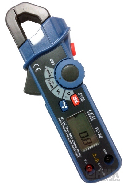 Компактные токовые клещи FC-36 предназначены для измерения постоянного и переменного тока до 200А. Также клещи имеют бесконтактный детектор напряжения и фонарик.
