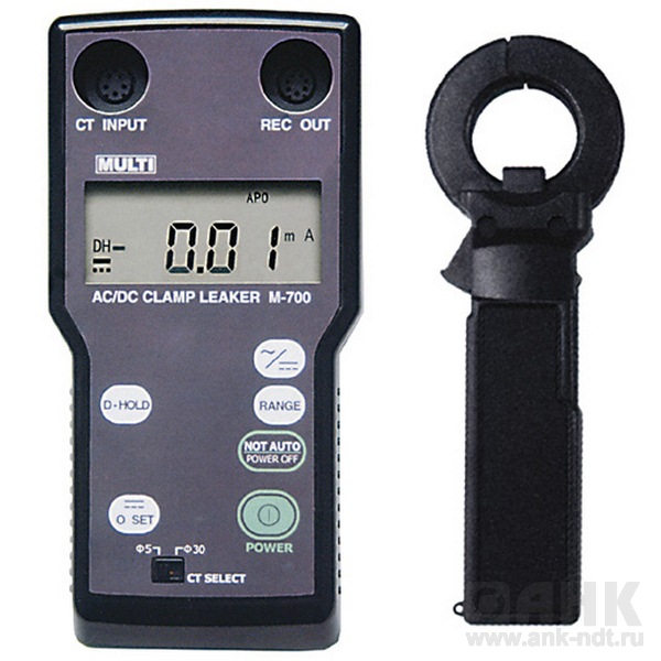 Клещи электроизмерительные, пределы измерения постоянного тока утечки 100/ 1000 мА (разрешение 0,01/ 0,1 мА), переменного тока утечки 100/ 1000 мА/ 10 А (45 – 65 Гц, разрешение 0,01/ 0,1/ 1 мА), базовая погрешность 1 %, установка нуля для DC, автооткл. через 10 мин., аналоговый выход для контроля измерений (100 мВ – полная шкала), раскрытие 5 мм, 1 изм./сек для DC, 6 изм./сек для AC, 4 х 1,5 В AA (время работы 200 ч), изм. блок: 78 х 155 х 32 мм, 280 г, клещи: 19 х 133 х 28 мм, 100 г, длина соед. провода 1,2 м.