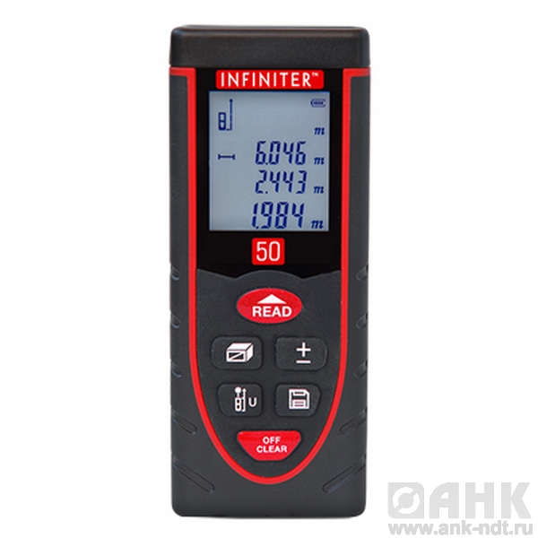 Если Вы дизайнер, декоратор или мебельный мастер, то по достоинству оцените многопозиционную пятку, которая позволяет производить замеры из углов помещений, узких мест, щелей, либо в обхват от края поверхности мебели и строительных конструкций. Супер-прочный обрезиненный выдерживает падение с большой высоты, не боится сырости и грязи, удобно ложится в руку. Силиконовая клавиатура не боится низких температур и имеет самые крупные в своем классе кнопки, что по достоинству оценят на стройплощадке, работая с дальномером Infiniter 50 не снимая защитных перчаток. Лазерный дальномер Infiniter 50 оснащен 3х строчным дисплеем с подсветкой, имеет крупные значки, хорошо читается даже в удалении и в темноте.