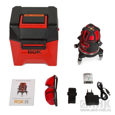 Комплект поставки: лазерный уровень RGK LP-61, кейс, ремень, аккумуляторные батареи, зу для аккумуляторных батарей, очки, инструкция.