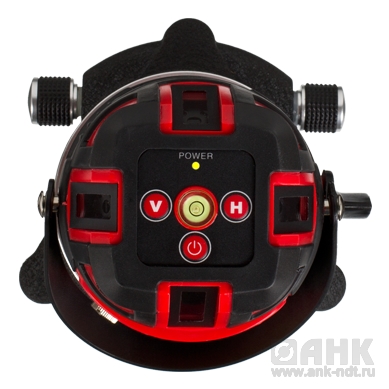 Круглый пузырьковый уровень в крышке прибора обладает собственной подсветкой, что позволит работать в полумраке, когда лазерные лучи лучше видны.