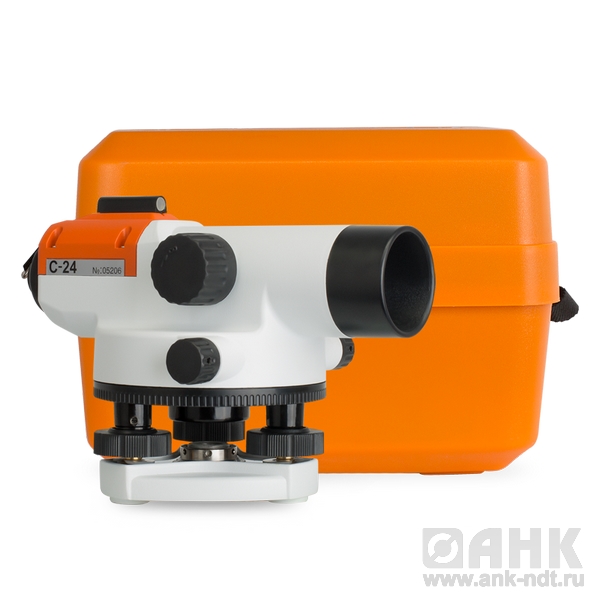 Качественная оптика прибора обеспечивает прямое изображение с 24-кратным увеличением, что гарантирует комфорт оператора и минимизирует ошибку измерения. Средняя квадратическая ошибка RGK C-24 составляет  2 мм на километр двойного хода – такой точности достаточно для эффективного решения большинства измерительных задач. Встроенный воздушный компенсатор устраняет ошибку при горизонтировке прибора.