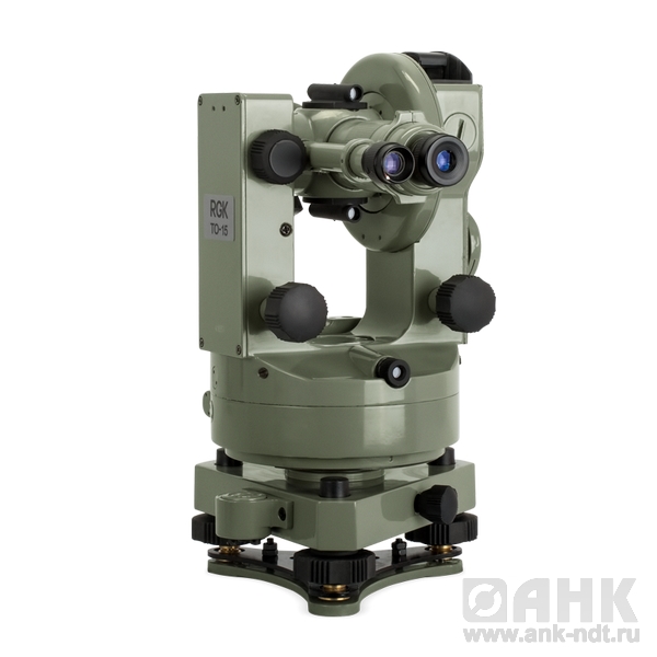 Оптика теодолита обеспечивает  прямое изображение с 28-кратным увеличением, минимальное расстояние визирования составляет 2 метра. Для точной установки на место проведения измерений прибор теодолит RGK TO-15 оснащён оптическим центиром и, дополнительно, нитяным отвесом.  Горизонтальное положение прибора задаётся по встроенному цилиндрическому уровню с помощью плавных винтов наводки, а надёжные фиксирующие винты предотвратят случайную разгоризонтировку теодолита.