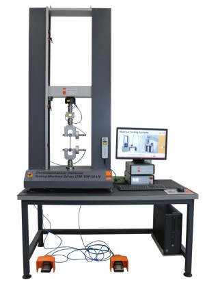 Испытательная машина LFM-50 в двухколонном настольном исполнении с возможностью преднагружения, безлюфтовой шаровинтовой парой, с дополнительными прочными опорными колоннами, гарантирующими точную геометрию испытательной системы. Применяются не только для испытаний на растяжение, сжатие и изгиб, но и для испытаний с переходом нагрузки или деформации «через 0». Шаровинтовая пара управляется с помощью высокоточного бесщеточного электродвигателя переменного тока с цифровым управлением. Служит для испытания образцов металла и композиционных материалов.