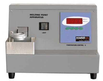 Прибор измерения температуры плавления: порошковый материал размещается между двумя стеклами, которые устанавливаются в печи и нагреваются. Специальный температурный регулятор постепенно повышает температуру печи до температуры на 10°C меньше заранее заданной примерной температуры плавления образца. Далее прибор постепенно повышает температуру, и исследователь визуально наблюдая плавление материала через увеличительное стекло, определяет температуру плавления.
