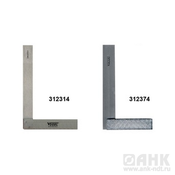 Угольники Vogel 90° слесарные, диапазон от 100х70 до 2000х1000мм, с основанием и без, по заводской точности, предназначены для построения углов, представляют собой прямоугольный треугольник с углам в 30° и 60°или по 45°. Используются для разметки деталей, в слесарном, плотницком и столярном деле, для центрирования валов, в машиностроительной промышленности, цехах и мастерских. В ассортименте угольники с плоским основанием для тупых углов 120° и 135°и специальные разметочные варианты.