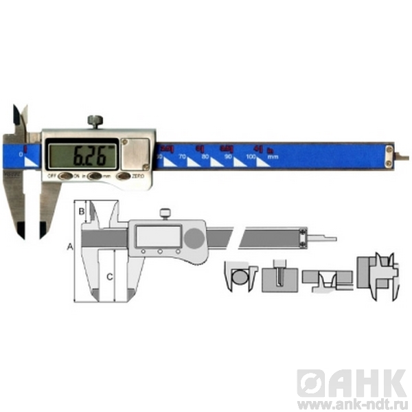 Штангенциркуль Vogel цифровой 100 мм диапазон измерений 0-100х0,01 мм, в металлическом корпусе с глубиномером, предназначен для измерения и разметки размеров – внешних и внутренних. Конструкция прибора довольно проста: представлена двумя измерительными поверхностями: базовой, соединенной со штангой-линейкой, и дополнительной, сопряженной с рамкой, которая движется по линейке, между которыми выставляется размер. На линейке имеются деления, а на рамке – установленный или выгравированный нониус.