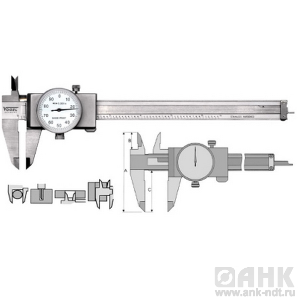 Описание штангенциркулей Vogel с круговой шкалой в дюймах