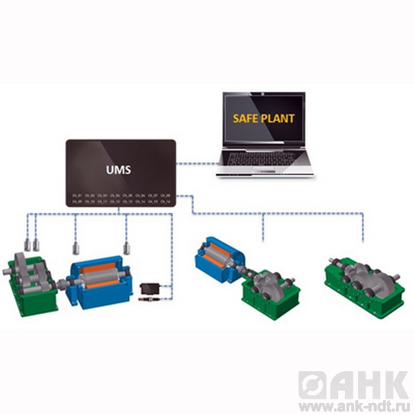 Настоящий Комплекс представляет собой совокупность первичных преобразователей, соединительных кабелей, универсального многоканального измерительного блока  UMS-16 и рабочего места оператора с ПК или ноутбуком, монитором, принтером, устройствами периферии и источником бесперебойного питания. Настройка каналов, управление измерениями, сбор, обработка, запись, просмотр, анализ и хранение данных, а также формирование протоколов осуществляется в программном обеспечении SAFE PLANT. В зависимости от решаемых задач в качестве первичных преобразователей могут быть использованы различные виды датчиков вибрации, частоты вращения, температуры, механических величин и пр. с различными видами крепежных элементов – магнитов, специальных стоек и т.д. Универсальный многоканальный измерительный блок с высокопроизводительными 24-х разрядными АЦП обеспечивает синхронные измерения параметров по 16 независимым динамическим каналам, их первичную обработку и передачу в ноутбук через USB. Питание Комплекса и первичных преобразователей может быть организовано как через USB, так и с использованием внешнего источника. Пакет специализированных программ SAFE PLANT, установленных на ноутбуке Комплекса, обеспечивает сбор и дополнительную обработку результатов измерений, их запись в базу данных, отображение, анализ (пользовательский и автоматический с использованием экспертных систем) и формирование отчетности.