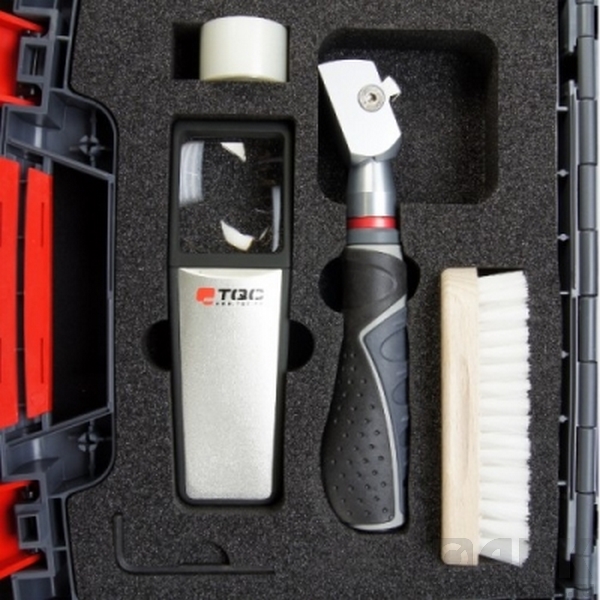 Тестер адгезии покрытий методом решетчатых надрезов TQC CC1000 - набор для оценки адгезии методом поперечных насечек используется для проверки адгезии сухого слоя краски на подложке с помощью серии разрезов на покрытии. Круглый резак имеет восемь режущих кромок, которые можно легко менять путем вращения ножа.