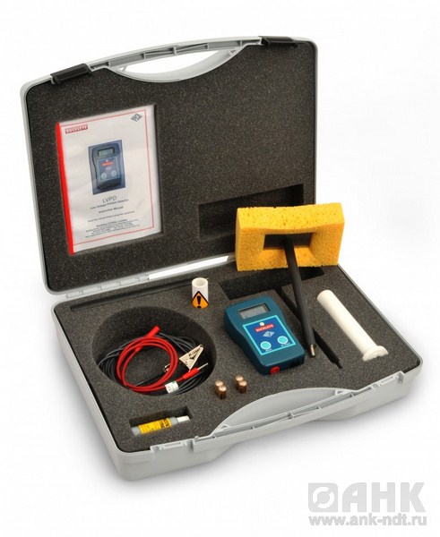 В комплект поставки LVPD1 входит: низковольтный детектор пропусков, кабели, зонд-спонж с удлинительным стержнем, батареи, бутылка 30мл с мокрым реагентом и инструкция по эксплуатации.