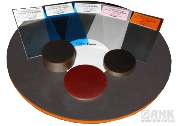 Комплект мер для толщиномеров покрытий. Образцы мер толщины (пленки, диски из пластиков и пр.) предназачены для контроля работоспособности и калибровки вихретоковых и магнитных толщиномеров покрытий.