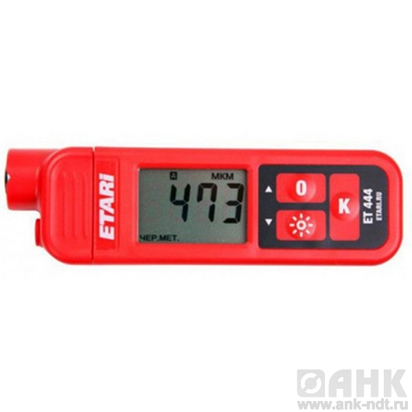 Основное преимущество толщиномера ET-444 - это возможность контроля краски не только на черных металлах (магнитные металлы - железо, сталь, чугун до 2000 мкм), но и на цветных металлах (не магнитные - медь, алюминий, цинк, бронза, латунь и т.д. до 1000 мкм).