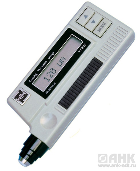Толщиномер покрытий TT 230 - прибор, работающий по методу вихревых токов, измеряет толщину неэлектропроводящих покрытий на немагнитной металлической основе (эмаль, каучук или краска на меди, алюминии, цинке или олове) без нанесения вреда проверяемому объекту. Прибор имеет малые размеры и вес. Толщиномер TT 230 сертифицирован Госстандартом РФ и внесен в Государственный реестр средств измерений.