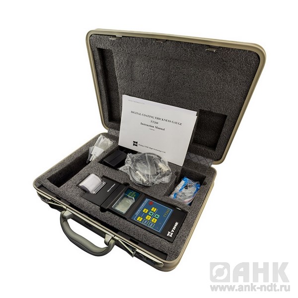 Компактный цифровой толщиномер покрытий для измерения толщины покрытий как на магнитном, так и на немагнитном основании, с выносными датчиками, со встроенным принтером и расширенной памятью на 495 результатов измерений. Толщиномер TT 260 сертифицирован Госстандартом РФ и внесен в Государственный реестр средств измерений.