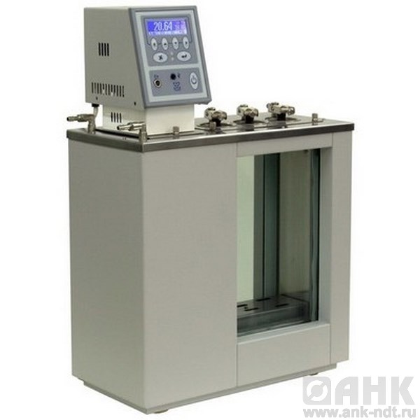 Постоянный уровень теплоносителя в промежутке между окнами внешней и внутренней ванн обеспечивается наличием буферной ванны. Такая конструкция исключает необходимость частого добавления теплоносителя. В стандартной 2-х ванновой конструкции при испарении теплоносителя его уровень между окнами внешней и внутренней ванн быстро снижается, что мешает наблюдению за вискозиметрами в процессе измерения.