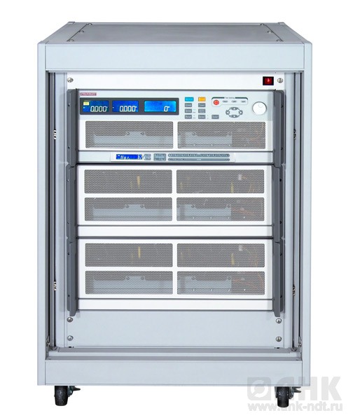 • Аналог АКИП-1306. Ток до 80 А, напряжение до 500 В, мощность до 2,4 кВт, масса 38,8 кг. Состав: 2 блока и подкатной шкаф 15U, 45 кг