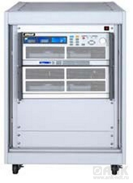 - дискр. уст. параметров (набор на клавиатуре или в пошаговом режиме); режимы защиты: от перегрева (OTP), перегрузки по току (ОСР), по напряжению (OVP), по мощности (OPP); внутренняя память 150 ячеек (профили состояний). Интерфейс (опции): RS232, LAN, GPIB, USB (только взамен; 1 слот расширения), масса 47 кг. В комплекте подкатной шкаф 15U, 34 кг