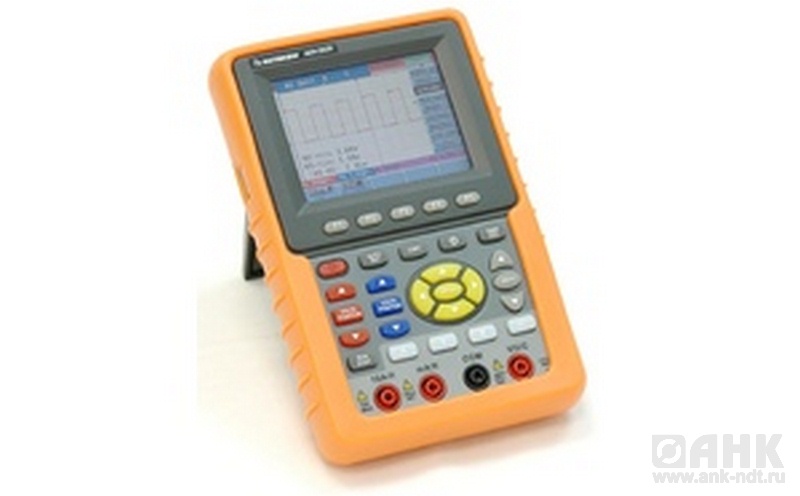 • Осциллограф - мультиметр, полоса 20 MHz, 2 канала, цветной ЖКИ, дискретизация 100 MHz, длина записи 6 кБт/кан., вер. разр. 8 бит, разв. по верт. 5 мВ...5 В/дел., по гор. 5 нс...5 с/дел., 5автоизмерений, курсорные измерения, видео синхр. с выбором строки, макс. вход. напряж. 400 Впик, встроенный мультиметр, USB интерфейс, аккумуляторное питание,