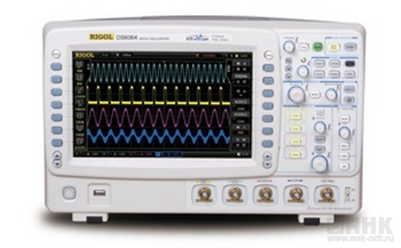 Rigol DS6064 – представитель флагманской серии осциллографов Rigol. Цифровой осциллограф Rigol DS6064 имеет расширенную систему синхронизации и декодирования потоков данных. Rigol DS6064 обладает режимом сегментированной памяти, с помощью которого можно выделить нужную область сигнала в виде кадра для сбора данных и записать в памяти до 180 тыс. кадров с последующим их воспроизведением и анализом. Новейшая технология UltraVision позволяет получить 256 градаций яркости и систему фильтрации в реальном времени. Осциллограф Rigol DS6064 отображает до 5 измеренных параметров со статистикой благодаря наличию функции автоматических измерений горизонтальных и вертикальных параметров. Rigol DS6064 можно использовать в автоматизированных измерительных системах, так как он совместим с классом С стандарта LXI.