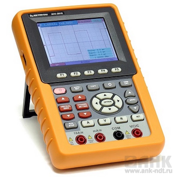 Осциллограф - мультиметр АСК-2018, полоса 20 MHz, 1 канал, цветной ЖКИ, дискретизация 100 Мвыб/сек, длина записи 6 кБт/кан., вер. разр. 8 бит, разв. по верт. 5 мВ...5 В/дел., по гор. 5 нс...100 с/дел., 20 автоизмерений, курсорные измерения, видео синхр. с выбором строки, макс. вход. напряж. 400 Впик, встроенный мультиметр, USB интерфейс, бесплатное (в комплекте поставки) программное обеспечение AKTAKOM DSO Soft и AKTAKOM DSO-Reader Light с расширенной обработкой сигнала, включая фильтрацию; программное прореживание; БПФ (10 типов окон); 3 типа персистенции; сохранение в форматы AUL, *bmp, *wmf, *emf; масштабирование; настройку цветовых схем; курсорные и автоизмерения, аккумуляторное питание, размеры 180x115x40 мм, масса 645 г.