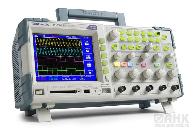 • Цифровой осциллограф с изолированными каналами. Полоса 100 МГц, 4 изолированных канала, дискретизация 1ГГц, активный цветной TFT ЖКИ, память 2,5 кБ/канал, развертка верт.. 2 мВ - 5 В/дел., гориз. 5 нс - 50 с/дел., БПФ, карта памяти CompactFlash, 11 автоизмерений, частотомер, видеосинхронизация с выбором строки, синхронизация по длительности импульса, аккумуляторное питание, RS-232 с адаптером на USB, LPT.