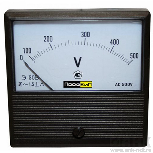 Вольтметры щитовые переменного тока ПРОФКИП Э80В предназначены для напряжения переменного тока в электрических цепях. Относятся к классу электроизмерительных аналоговых, однозначных, щитовых, электромагнитной системы с неподвижной катушкой и подвижным ферромагнитным сердечником со стрелочным указателем, жестко закрепленном на оси вращения сердечника, с неравномерной шкалой и нулевой отметкой на краю диапазона измерений.