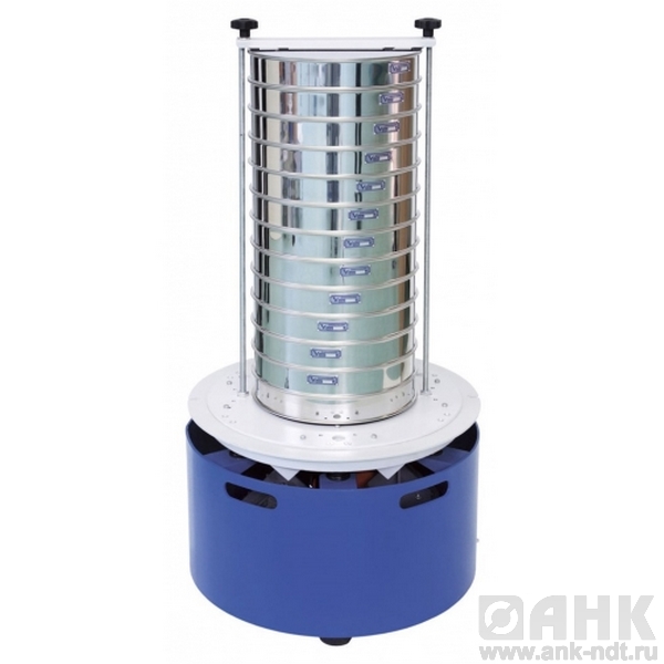 В состав анализатора входят: вибропривод, просеивающая часть (состоящая из комплекта сит, поддона и крышки), и устройство крепления сит (УКС).