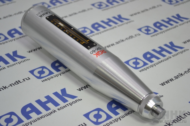 Принцип работы RGK SK 60 основан на измерении высоты отскока бойка в у.е. шкалы прибора о контролируемую поверхность объекта, что является косвенной характеристикой прочности на сжатие.