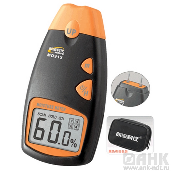 Влагомер снабжен автоматической функцией компенсации температуры. Устройство может работать с 4-мя предустановленными типами деревянных материалов. Во влагомере используется 2-х контактный игольчатый сенсор влажности.