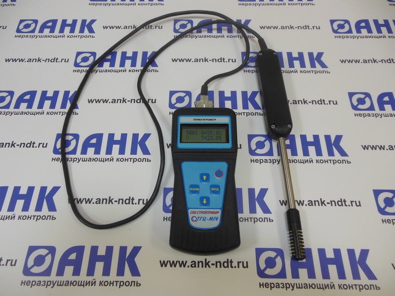 Прибор выполнен в виде электронного блока и выносного зонда с преобразователями влажности и температуры, оснащен функциями оперативных измерений влажности и температуры воздуха, а также определения температуры точки росы.