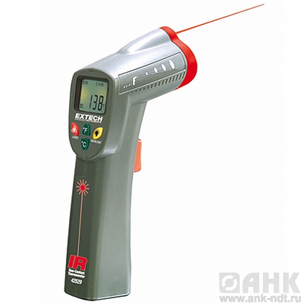 Пирометр Extech 42529/инфракрасный термометр с диапазоном измерения температуры от -20 до 320°C, 6:1 позволяет измерять температуру ночью и при слабом освещении Широкий ЖК-дисплей с подсветкой. Возможность переключения единиц измерения с C° на F°.Бесконтактное измерение температуры до 320°C.