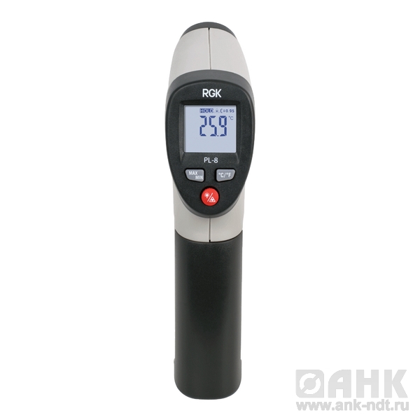 Пирометр RGK PL-8 – это универсальный инфракрасный термометр, позволяющий быстро и безопасно определить температуру любой поверхности. При небольшом весе и компактных габаритах этот инфракрасный пирометр оснащён всем необходимым набором функций и представляет собой самый доступный прибор этого типа на российском рынке. Благодаря своим характеристикам RGK PL-8 идеально подходит для регулярного контроля на производстве, в сфере ЖКХ и в быту, так как невысокая цена и интуитивная простота обращения делает этот пирометр доступным широкому кругу пользователей. Прибор выполнен в виде пистолетной рукояти с большой спусковой кнопкой, что обеспечивает удобство измерения, а инфракрасный метод измерения гарантирует безопасность пользователя даже при работе с сильно нагретой поверхностью или проводниками под током.