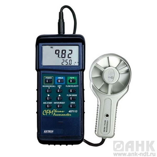 Особенности анемометра CFM с металлическим лопастным колесом для работы в тяжелых условиях Extech 407113: