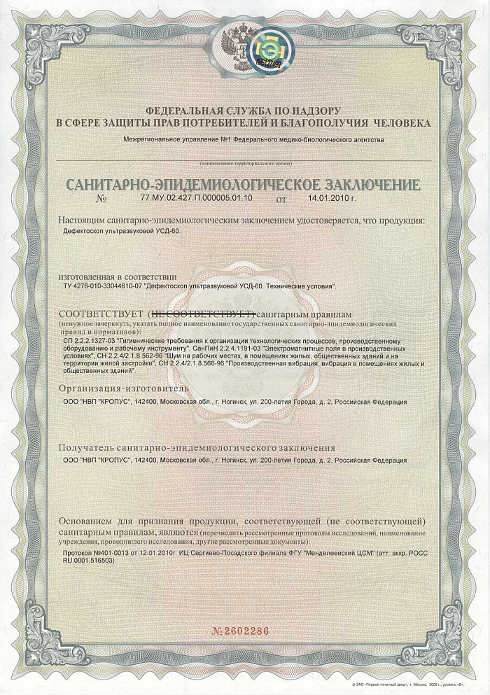 Кропус Ультразвуковой дефектоскоп на фазированных решетках УСД-60ФР 1525000.00