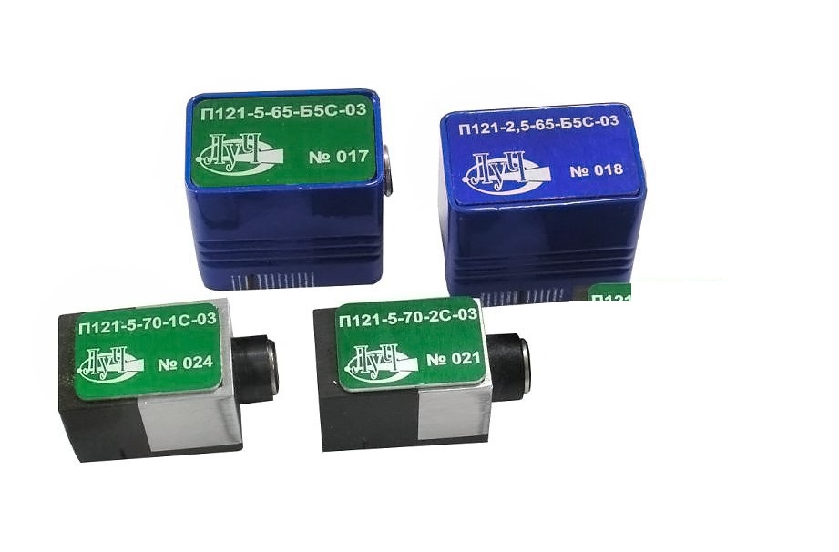 Наклонные совмещённые контактные преобразователи типа П121 с малой стрелой предназначены для контроля сварных и паяных соединений и обнаружения дефектов различной ориентации. Малая стрела позволяет контролировать корень сварного шва по первому отражённому сигналу.