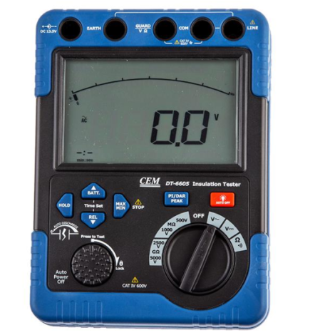• Измеритель сопротивления изоляции цифровой DT-5500 предназначен для измерения сопротивления изоляции, напряжения постоянного и переменного тока, а также электрического сопротивления участка цепи. Поверка мегаомметра DT-6605 осуществляется в аккредитованной лаборатории АНК и занимает от 1 до 5 дней.
