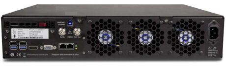 Удаленное управление и программирование осуществляется с помощью стандартных интерфейсов USBTMC, LAN (LXI или TCPIP) с помощью управляющей программы WaveStudio. Интерфейс GPIB доступен при использовании внешнего кабеля-адаптера «USB-GPIB». Вся экранная информация в привычном для пользователя виде может быть доступна на большом экране внешнего ПК или ноутбука (выходы DisplayPort, DVI). Кроме того, на задней панели расположены 4 USB гнезда материнской платы центрального процессора: 2 шт — USB 3.1 Gen1 / 2 шт – USB 2.0, а также слот твердотельного накопителя SSD.