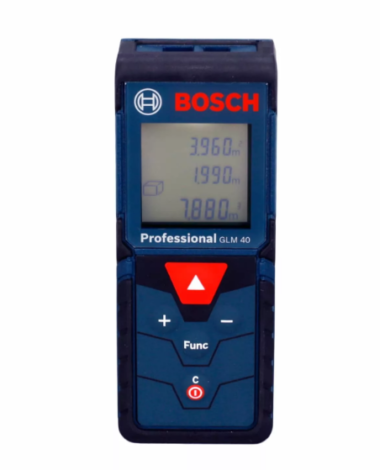 Возможность выполнять измерения от задней кромки Bosch GLM 40, облегчает снятие замеров от стен и из углов помещений. Вам не придётся постоянно вычитать длину прибора из результатов замеров, вы сразу получите готовые цифры. Лазерный дальномер работает от двух стандартных батареек типа «ААА», комплекта которых хватает приблизительно на 5000 измерений. Купить лазерный дальномер Bosch GLM 40 — хороший выбор как для проведения профессионального строительства и ремонта, так и для выполнения бытового ремонта и отделки помещений.