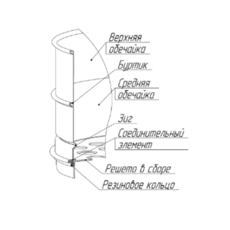 В месте крепления решета и на верхнем торце обечайки выполнены круговые буртики, а в средней части – зиг, обеспечивающие жесткость сита.