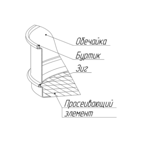 На верхнем торце обечайки выполнен круговой буртик, а в средней части — зиг, обеспечивающие жесткость сита.